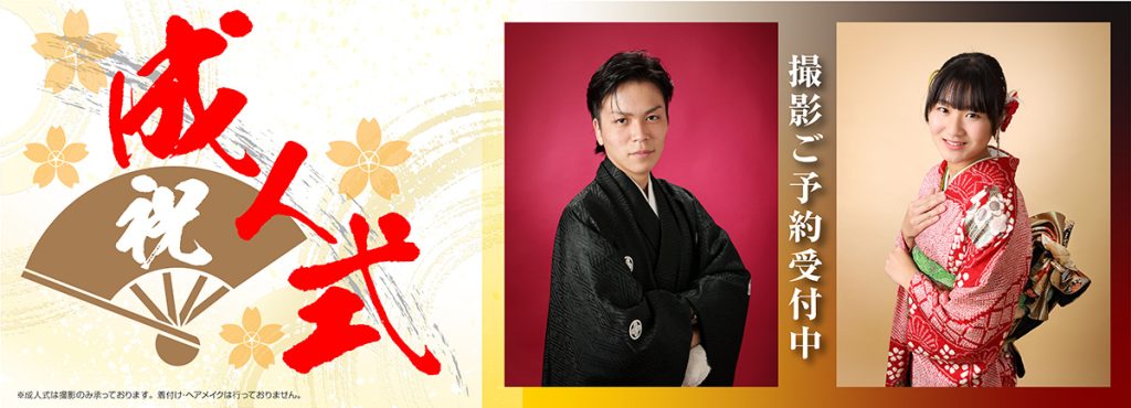 20歳を迎えられる新ご成人様のスタジオ記念撮影もご予約を承っております。お気軽にお問い合わせ下さいね♪